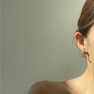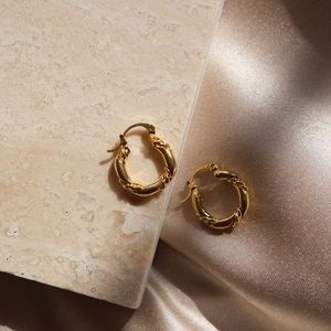 18K Gold Plated Parisian Style Celine Twist Hoop Earrings. Minimalistic and dainty look that gives you the Woke up from Paris Feel!