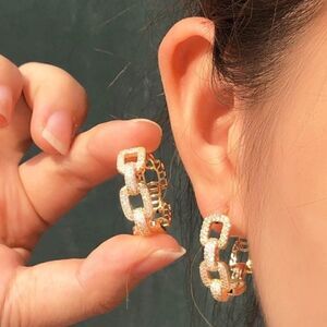 18K Gold plated Zirconia Chain Hoop Earrings