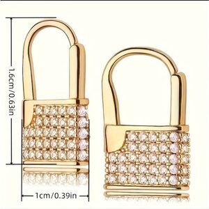 18K Gold Plated Diamond Pave Pad Lock Earrings