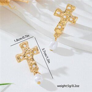 18K Gold-Plated Synthetic Pearl Cross Drop Earrings