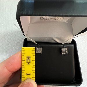 18K Oxidized White Gold Square Ear Studs w/ Screw Backs - New with tag as shown. (Certified appraisal provided as shown in photos)