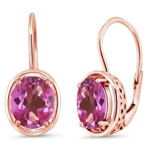 18K Rose Gold 925 with 3.60 Cttw Pink Mystic Topaz Oval Leverback Drop Earrings