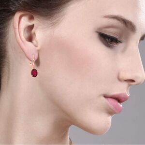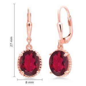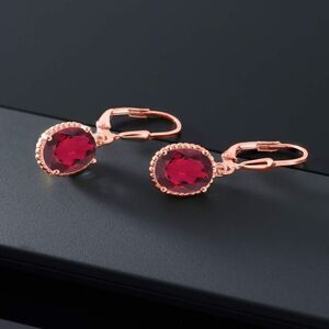 18K Rose Gold 925 with 3.60 Cttw Ruby Red Mystic Quartz Oval Leverback Earrings