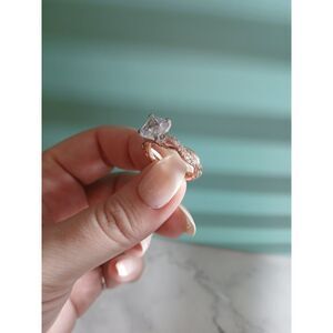 Description: Elegant and eye-catching, this princess-cut moissanite ring features a beautifully twisted vine band, symbolizing eternal love and grace. Crafted with 18K rose gold plating, this ring delivers exceptional brilliance and fire, making it perfect for engagements, anniversaries, or as a luxurious statement piece. A stunning blend of romance and modern design, this ring is sure to impress.