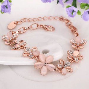 18K Rose Gold Plated Rhinestone Flower Bracelet