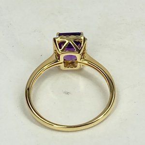 18K Solid Yellow Gold Amethyst with Diamond Halo Ring Size 6.75