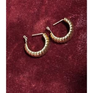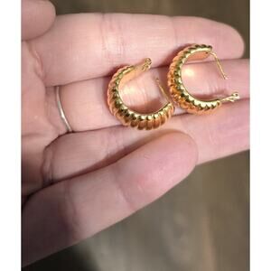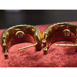 18K Solid Yellow Gold Omega Clip Back Post Hoop Earrings READ DESCRIPTION!!