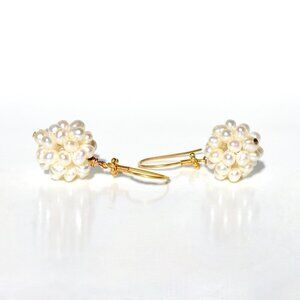 18K Solid Yellow Gold Pearl Beaded Drop Dangle Earrings