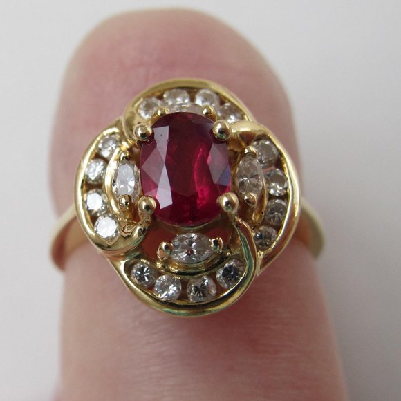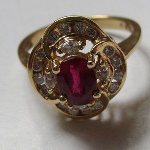 18K Solid Yellow Gold with Ruby & Diamonds Ring