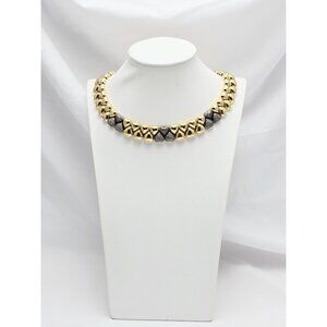 18K Two Tone Multi Color Gold Antique Multi Heart Diamond Choker Link Necklace