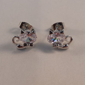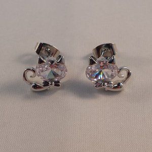 Beautifully crafted classic design zircon cat stud earrings 18K white gold filled with large oval sparkling simulated diamond topaz zircon gemstones. Top quality, high polished shine, brand new, never been worn. Lead, nickel free. These earrings sparkle.