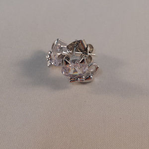 18K White Gold Filled Cat Diamond Zircon Stud Earrings 1.21ctw ea Party Gift