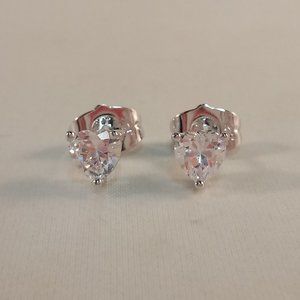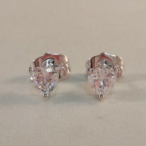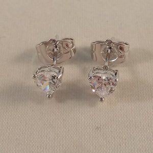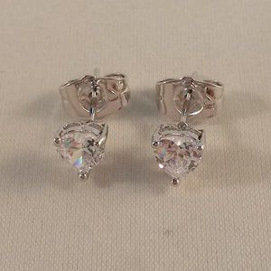 Beautiful crafted women's gorgeous white heart shape zircon stud earrings 18K white gold filled + silver w/excellent cut grade sparkling heart shape clear white simulated diamond zircon gemstones. Top quality, high polished shine, brand new, never been worn. Lead, nickel free. These earrings sparkle.