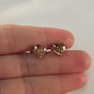 18K White Gold Filled Heart Shape Morganite Diamond Zircon Stud 7mm
