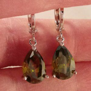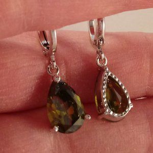 18K White Gold Filled Peridot Olive Green Pear Diamond Zircon Dangle Earrings