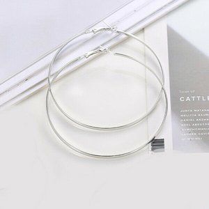 18K White Gold Plated Silver Large Smooth Hoop Earrings 50mm or 1.96" Party Gift