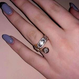 18K YELLOW PLATED OVER STERLING SILVER DIAMOND CHARM RING