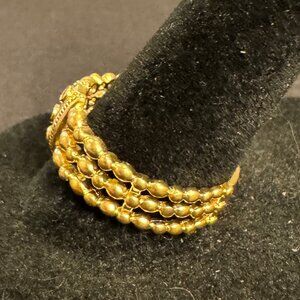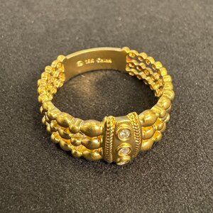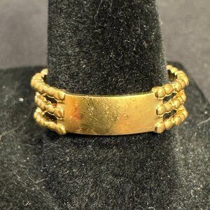 18K Yellow Gold Beaded Ring with Diamonds, Size 8.75