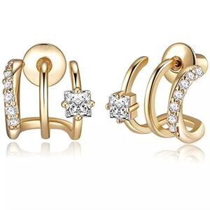 18K Yellow Gold Claw Hoop Earrings with Diamond Highlights on 925 Silver Women's