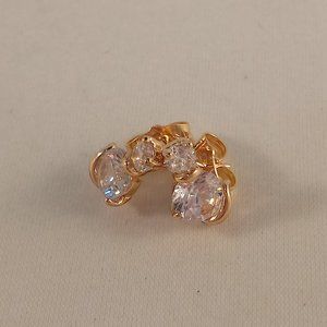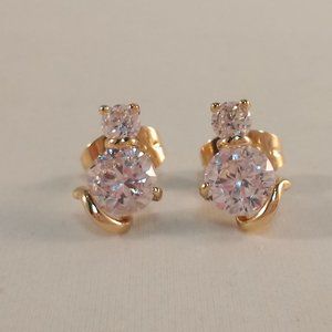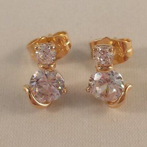 Beautifully crafted classic design small cat zircon stud earrings 18K yellow gold filled with sparkling excellent cut quality round clear white simulated diamond zircon gemstones. Top quality, high polished shine, brand new, never been worn. Lead, nickel free. These earrings sparkle.
