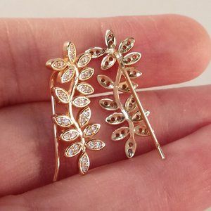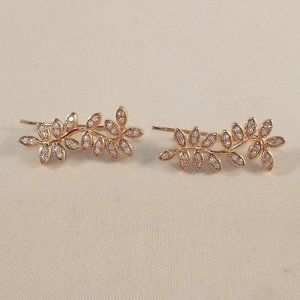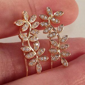 18K Yellow Gold Filled Diamond Zircon Leaf Branch Drop Earrings Gorgeous Gift