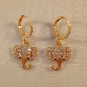 18K Yellow Gold Filled Elephant Diamond Zircon Dangle Earrings Gorgeous Gift