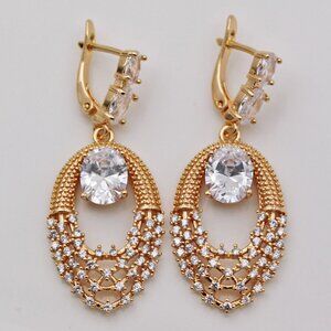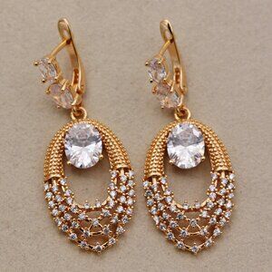 18K Yellow Gold Filled Geometric Modern Oval Diamond Zircon Drop Dangle Earrings