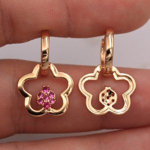 18K Yellow Gold Filled Hollow Flower Rose Pink Diamond Zircon Dangle Earrings
