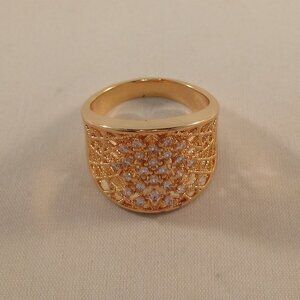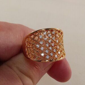 18K Yellow Gold Filled Wide Band Web White Diamond Zircon Ring Gorgeous Gift