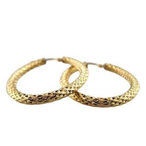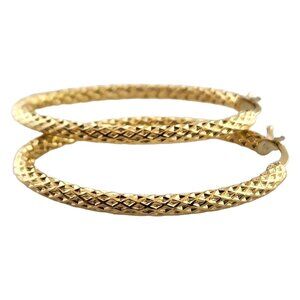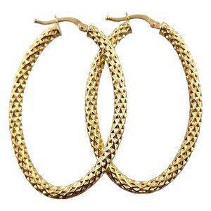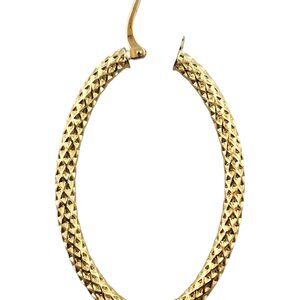 18K Yellow Gold Oval Textured Hoop Earrings #18317