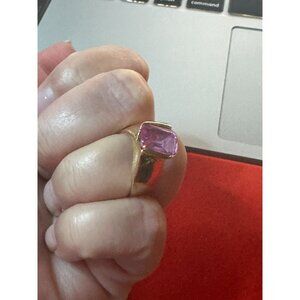 • Solitaire, Sturdy 18K gold build, radiant pink-lavender amethyst, luxurious and durable