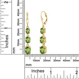 18K Yellow Gold with 5.64 Cttw 3 Stone Peridot Dangling Leverback Drop Earrings