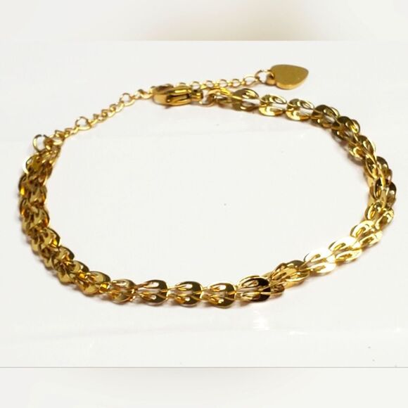 This beautiful handmade chain bracelet is made from Titanium and 18K Yellow Gold. Wear it often, even every day. Get it wet, it's ok. Made of high-quality materials. Will not tarnish or turn green. Simple care. Wash with a mild dish soap and rinse with water. Dry with a very soft cloth.