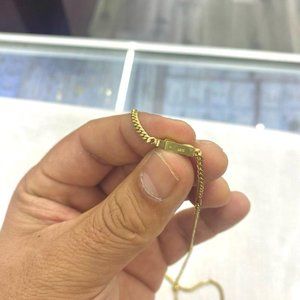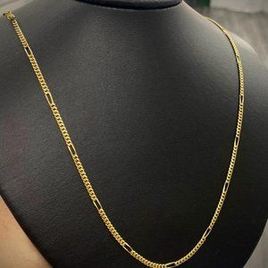 18K Yellow Solid Gold Figaro Cuban Curb Chain 26" Inches for Mens Cadena De Oro