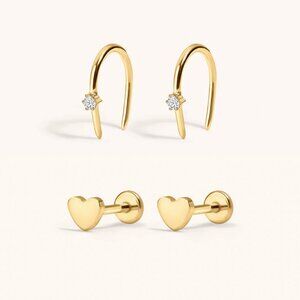 18K gold-plated titanium with CZ crystals earrings (2 pairs)