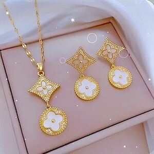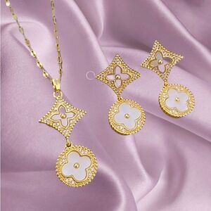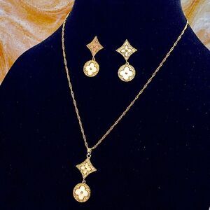 18K GOLD BLOSSOM FLOWER DESIGNS NECKLACE AND EARRINGS SET