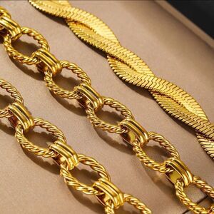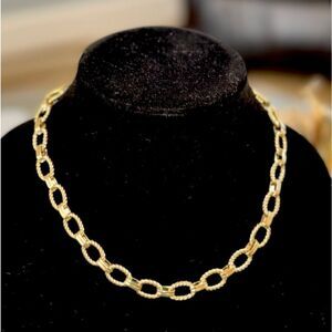 18K GOLD CHAIN LINK TWISTED STAINLESS INTERLOCKING TEXTURE CHOKER NECKLACE