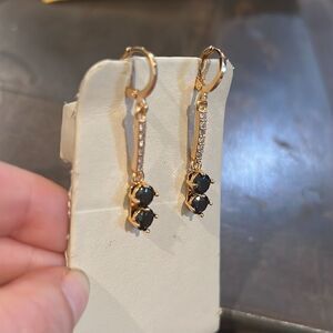 18K Gold Plated Black Mystic Topaz Long Dangle Earrings