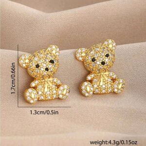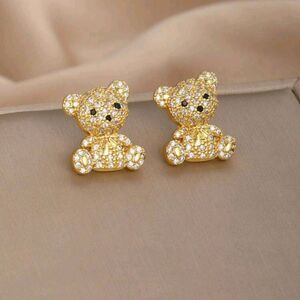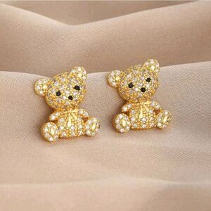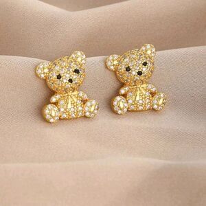 18K Gold Plated Diamond Teddy Bear Earrings