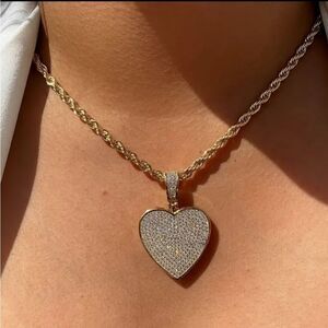 18K Gold Plated Diamond Heart Necklace - Simulated Diamonds
