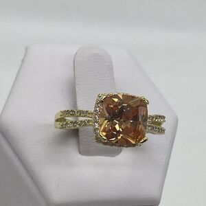 18K Gold Plated Filled Princess Halo Simulated CitrineโGem Ring ๐ โจ