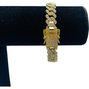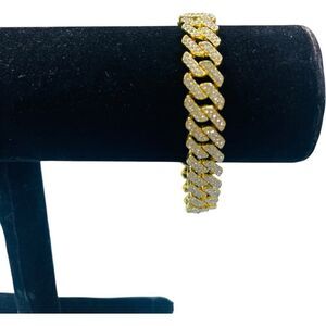18K Gold Plated and Crystal Cuban Link Bracelet