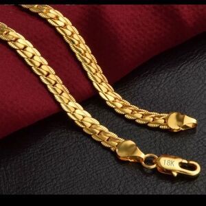 18K Gold 6mm Full Side Chain Necklace For Women Men Fashion Jewelry Charm Necklace Gift