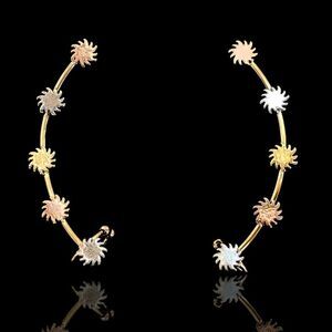18K Gold-Filled Tricolor Solar Flare Ear Climbers. 1.8 inch length