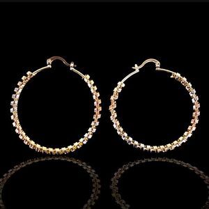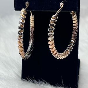 18K Gold-Filled Tricolor Spiral Cord Hoop Earrings Coil Spring Earrings