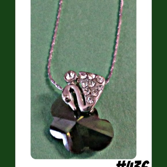 18KRP Swan / Butterfly Design Necklace With Green & Clear Crystals May Birthstone! Great For Gift Giving Or For Yourself.