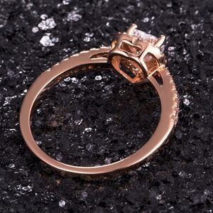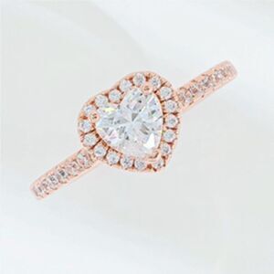 Brand New - 18k Rose Gold Halo Ring with Heart and Round Cut White Diamond Cubic Zirconia Ring