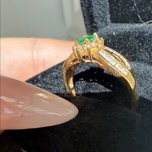 solid 18kt yellow gold. natural emerald. natural diamonds. absolutely stunning estate piece from my collection. size 6