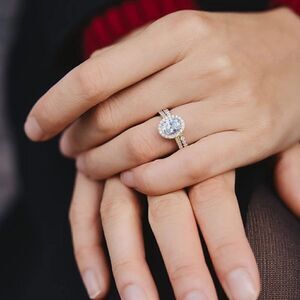 Brand New - 18k YGP S925 Sterling Silver with Round Cut Cubic Zirconia and 1.5 ct. Oval Cut Halo White Diamond Cubic Zirconia Engagement and Wedding Bridal Rings