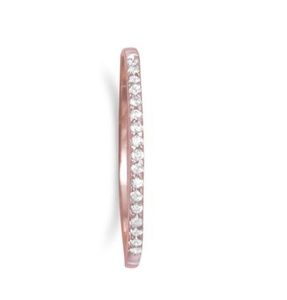 18 karat cute rose gold plated stackable sterling silver 1.2mm CZ ring. The CZ design measures approximately 16.5mm across the top of the band.